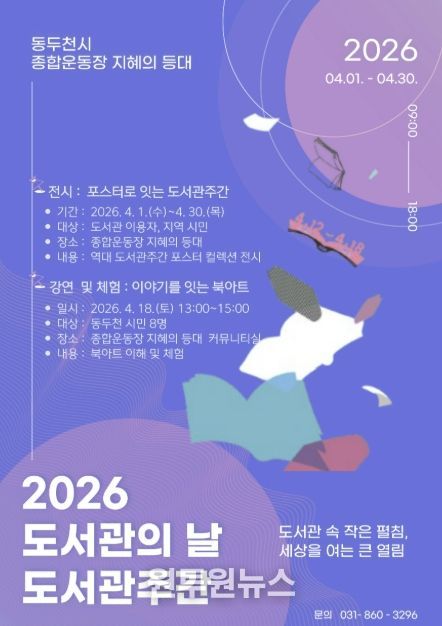 (원투원뉴스) 동두천시는 종합운동장 지혜의 등대에서 4월 한 달간 ‘2026 도서관의 날 도서관 주간’을 맞아 전시와 강연, 체험이 어우러진 문화 행사를 진행한다.