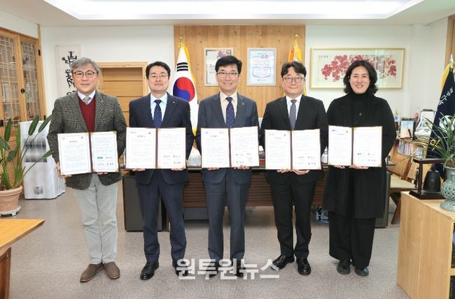 (원투원뉴스) 충청북도교육청은 23일 충북대학교(총장직무대리 박유식), 청주대학교(총장 김윤배), 건국대학교 글로컬캠퍼스(부총장 최영근), 충청대학교(총장 송승호), 순천향대학교(총장 송병국)와 예술교육 협력을 위한 업무협약(MOU)을 체결했다고 밝혔다.