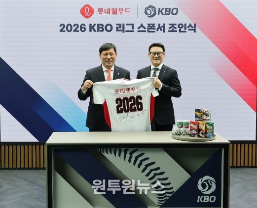(원투원뉴스) KBO와 롯데웰푸드㈜(대표이사 서정호)는 3월 23일(월) KBO 스튜디오에서 조인식을 갖고 2026 신한 SOL KBO 리그 공식 스폰서십을 체결했다.