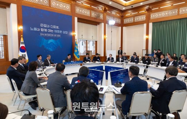 이 대통령은 지난주 경제사회노동위원회 1기가 출범한 사실을 언급하며 "노사정이 사회적 대화로 오랜 기간 누적된 문제를 해결하는 방법을 모색하고 미래 지향적인 논의가 되길 바란다"고 당부했다.