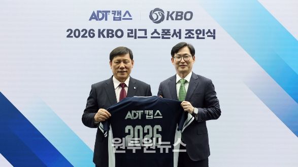 (원투원뉴스) KBO와 SK쉴더스(대표 민기식)의 물리보안 브랜드 ADT캡스는 3월 24일(화) KBO 스튜디오에서 조인식을 갖고 2026 신한 SOL KBO 리그 공식 스폰서십을 체결했다.