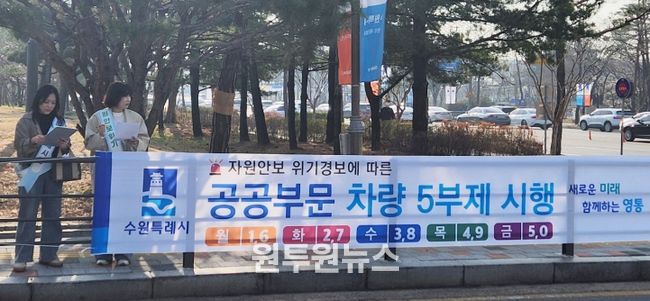 (원투원뉴스) 수원시 영통구는 정부의 에너지 절약 대책에 발맞춰 3월 25일부터 공공기관 차량 5부제 시행에 참여한다고 밝혔다.