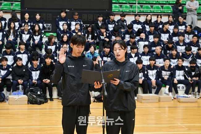 행사는 경과보고를 시작으로 △내빈 및 선수단 소개 △인사말씀△대표선서 △선수단 격려 순으로 진행됐으며, 참석한 내·외빈들은 훈련에 매진해 온 선수들의 손을 잡으며 뜨거운 응원을 보냈다.