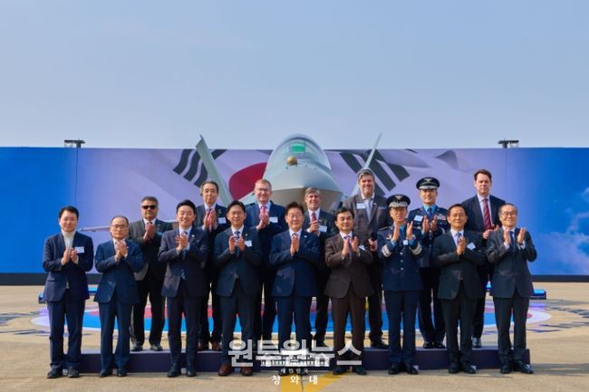 그러면서 "외국의 원조 무기에 국방을 의존하던 가난한 나라가 이제는 독자 기술로 첨단 무기를 직접 만들고, 그 무기를 세계 각국이 먼저 찾는 나라가 됐다"라며 "자랑스러운 우리의 전투기는 대한민국 영공을 지키고, 전 세계를 수호하는 연대의 상징이자 평화의 전령사가 될 것"이라고 강조했다.