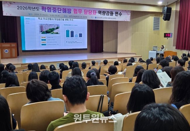 (원투원뉴스) 대전시교육청은 3월 25일 대전교육과학연구원 대강당에서 관내 초·중·고·특수·각종학교의 학업중단예방 업무담당자를 대상으로 ‘2026학년도 학업중단예방 업무담당자 역량강화 연수’를 개최했다고 밝혔다.