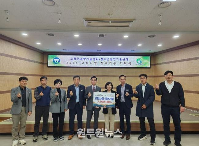 (원투원뉴스) 고창군농업기술센터는 지난 26일 장수군농업기술센터와 함께 ‘고향사랑 기부금 상호 기탁식’을 추진했다고 밝혔다.