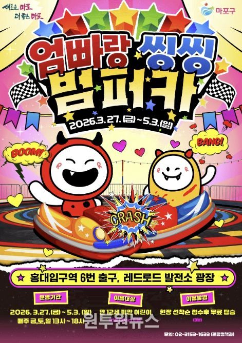 (원투원뉴스) 마포구는 레드로드 발전소 광장에서 진행한 ‘엄빠랑 아이스링크’ 행사가 큰 호응을 얻은 데 힘입어, 오는 3월 27일부터 5월 3일까지 ‘엄빠랑 씽씽 범퍼카’를 운영한다.