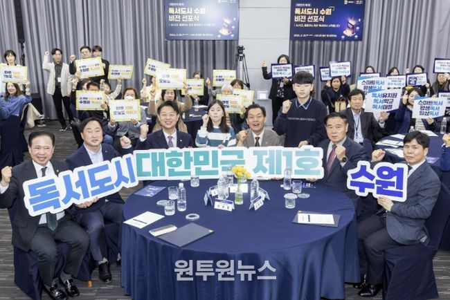 (원투원뉴스) 지방정부 최초로 ‘독서국가’ 선언에 동참한 수원시가 ‘독서도시 수원’ 비전을 선포했다. 비전 선포식은 3월 30일 시청 중회의실에서 열렸다.