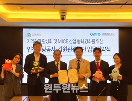(원투원뉴스) 강원관광재단이 수도권 관문 도시 인천과 협력하며 관광 및 MICE 산업 경쟁력 강화에 나섰다. 재단은 지난 3월 30일 인천관광공사와 지역관광 및 MICE 산업 활성화를 위한 업무협약을 체결했다고 밝혔다.