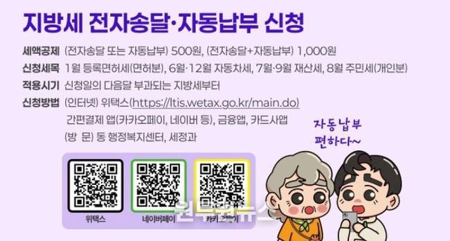 전자송달 서비스에 가입하면 다음 달부터 부과되는 지방세에 대해 건당 500원의 세액 공제를 받을 수 있고, 자동납부와 함께 신청하면 최대 1,000원의 세액 공제 혜택이 주어진다.