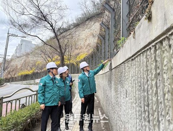 (원투원뉴스) 서울 동대문구는 해빙기를 맞아 지반 약화로 인한 시설물 전도, 낙석 등 안전사고를 예방하기 위해 옹벽 및 급경사지 등 안전취약시설에 대한 민·관 합동 현장점검을 실시하고 있다.