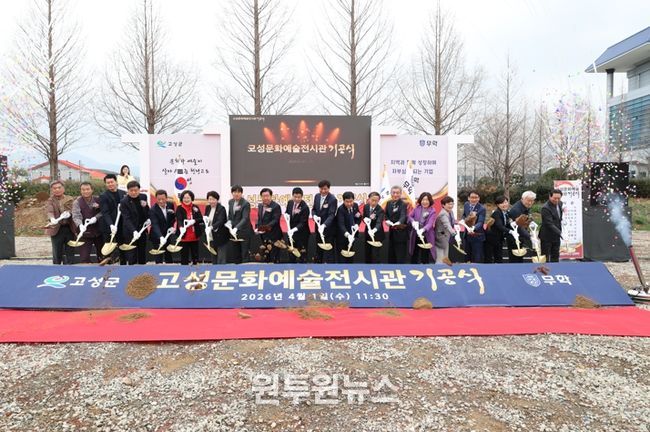 (원투원뉴스) 고성군과 무학그룹은 4월 1일, 고성읍 기월리 147-5일원에서 고성문화예술전시관 기공식을 성대히 개최하며 전시관 건립의 본격적인 시작을 알렸다.