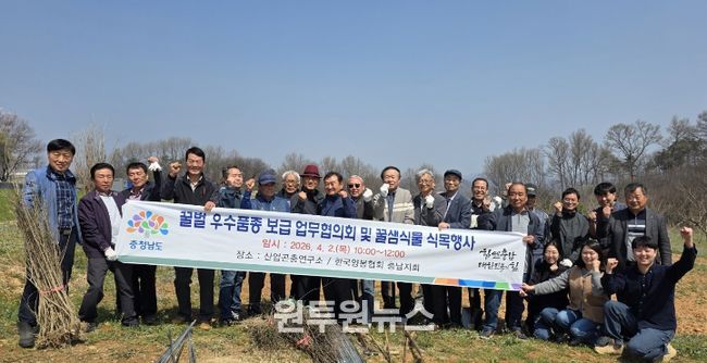 (원투원뉴스) 충남도 농업기술원 산업곤충연구소는 2일 연구소 내에서 ‘꿀벌 우수품종 보급 업무협의회 및 꿀샘식물 식목 행사’를 개최했다.
