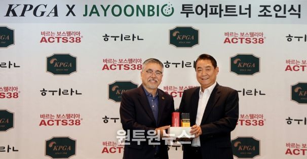 (원투원뉴스) ㈜한국프로골프투어(대표이사 김원섭, KPGT)와 ㈜자윤바이오(대표이사 윤성운)가 KPGA 투어파트너 협약을 체결했다.