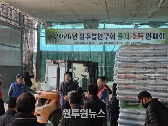 (원투원뉴스) 상주시농업기술센터는 4월 2일 상주쌀연구회와 농업인 40여 명이 참여한 가운데 성동뜰 소재 육묘장에서 벼 종자소독 연시회를 실시했다.