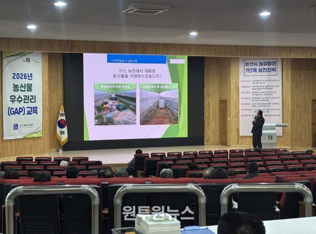 (원투원뉴스) 논산시는 농산물 안전성 확보와 소비자 신뢰도 향상을 위해 오는 4월 13일 14시, 농업기술센터 대강당에서 농업인 100명을 대상으로 ‘농산물우수관리제도(GAP) 교육’을 실시한다.