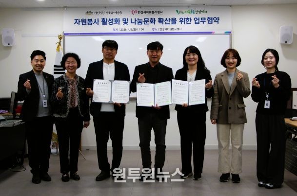 (원투원뉴스) 안성시자원봉사센터는 지난 6일, 안성시자원봉사센터 강의실에서 (사)마을과사람들, 경기도아동돌봄안성센터와 지역사회 복지 발전 및 나눔 문화 확산을 위한 업무협약을 체결했다.