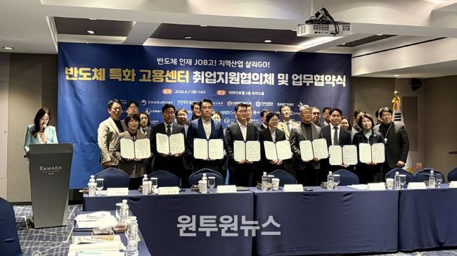 이에 도는 7일 수원 라마다호텔에서 경기지방고용노동청 주관으로 ‘반도체 특화고용센터 업무협약 체결식 및 협의회’를 열고, 인력양성과 채용 연계를 위해 협력하기로 했다.