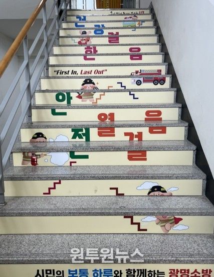 (원투원뉴스) 광명소방서는 직원들의 건강 증진과 활기찬 근무환경 조성을 위해 본서 주계단에 ‘안전건강계단’을 설치했다고 밝혔다.
