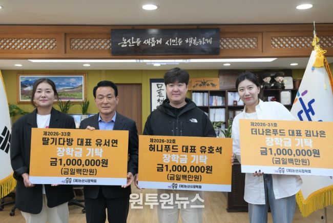 백성현 논산시장학회 이사장은 “정성으로 마련해 주신 소중한 기탁금에 깊이 감사드린다”며 “전달해 주신 장학금은 논산의 미래 인재를 키우는 데 뜻깊게 사용하겠다”고 말했다.