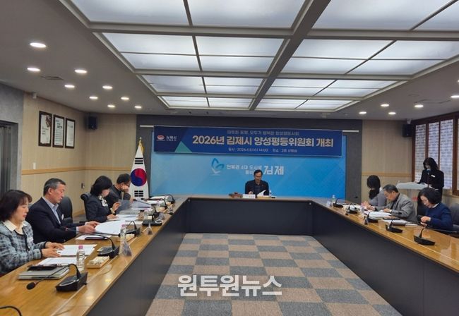 (원투원뉴스) 김제시는 8일 시청 2층 상황실에서 양성평등위원회 위원들이 참석한 가운데 ‘2026년 제1차 양성평등위원회’를 개최했다고 밝혔다.