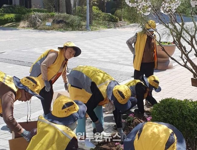 (원투원뉴스) 세종특별자치시 아름동이 지난 8일부터 9일까지 범지기마을 경로당에서 꽃밭과 텃밭을 가꿔 아름다운 마을을 조성했다.