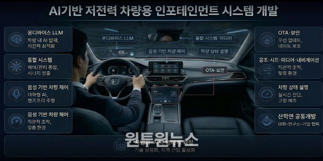 이번 사업은 이러한 산업변화에 대응하고자 ▲온디바이스(On-device) AI 기반 음성·제스처 인식 ▲저전력 최적화 및 실시간 처리 ▲무선 업데이트(OTA) 및 차량 보안 ▲경량 대규모언어모델(LLM) 기반 차량 제어 및 사용자 인터페이스 등을 통합한 차세대 차량 인포테인먼트 플랫폼 개발을 추진한다.