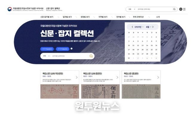 임시정부기념관 디지털 아카이브에서 공개되는 첫 번째 ‘신문‧잡지 컬렉션’은 임시정부의 기관지라 할 수 있는 독립신문을 통해 임시정부의 활동과 독립운동의 흐름을 이해할 수 있다.
