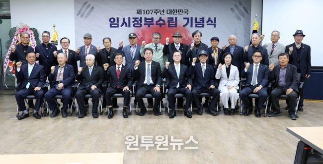 기념식은 △임시정부 수립 소개 영상 시청 △임시정부 선포문 낭독 △기념사 및 축사 △헌시 낭송 △독립군가 제창 △만세삼창 퍼포먼스 순으로 진행됐다.