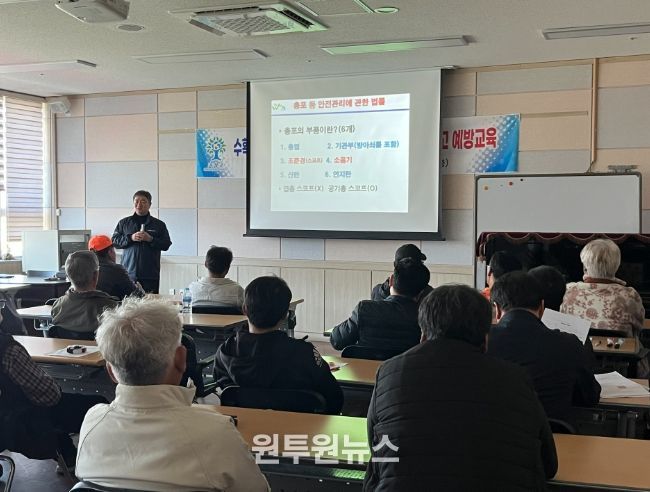 이번 교육은 최근 인근 지자체에서 총기 오인 사고로 인한 인명 피해가 반복적으로 발생함에 따라 수렵인과 주민의 안전사고를 예방하기 위해 마련됐다