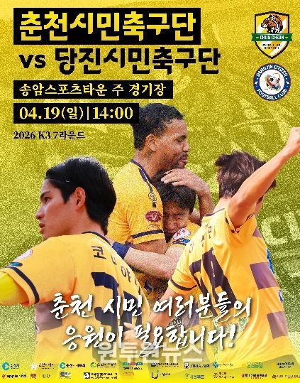 춘천시민축구단은 19일 오후 2시 송암스포츠타운 주경기장에서 당진시민축구단을 상대로 2026 K3리그 홈경기를 치른다.