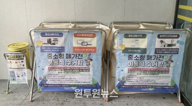 (원투원뉴스) 수원시 영통구는 주민들의 소형폐가전 배출 편의를 높이고 자원순환을 활성화하기 위해 주민센터 내 소형폐가전 수거함을 설치하고, e-순환거버넌스와 연계한 수거사업을 추진한다고 밝혔다.