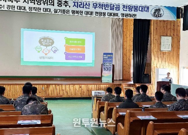 (원투원뉴스) 함양군 정신건강복지센터는 지난 4월 16일 오후 1시부터 3시까지 제118보병여단 3대대 강당에서 전 장병을 대상으로 ‘생명지킴이 양성 및 자살예방 교육’을 실시했다고 밝혔다.