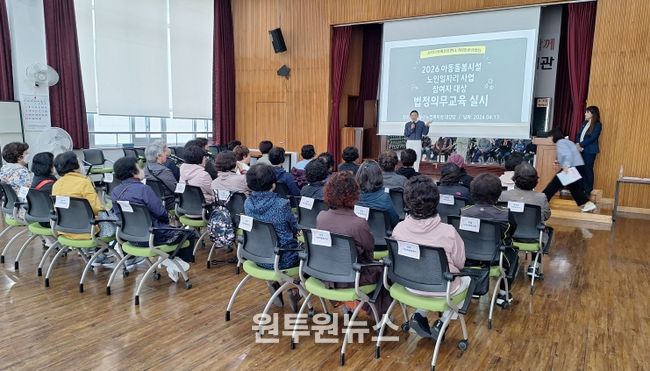 (원투원뉴스) 서부다함께돌봄센터 거점통합사업팀(센터장 이안나)은 4월 9일, 울산광역시동구노인복지관(관장 류현태) 2층 대강당에서 ‘다함께육아지원사업(노인역량활용사업)’참여자 30명을 대상으로 법정의무교육을 실시했다.