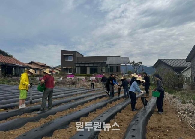 (원투원뉴스) 춘천시 농업기술센터와 춘천시 청년4-H연합회가 17일 신북읍 율문리 일원 농지 991㎡에서 감자 정식 작업을 마치고 공동과제포 영농 활동에 들어갔다.