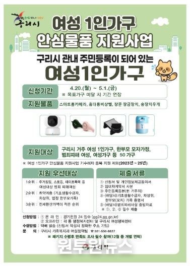 구리시 관계자는 “단순한 물품 지원을 넘어 시민들이 일상에서 심리적 안정을 느낄 수 있는 환경을 만드는 것이 이번 사업의 핵심”이라며, “앞으로도 지속적인 정보 수집과 제도 보완을 통해 더욱 촘촘한 안전망을 구축해 나가겠다.”라고 밝혔다.