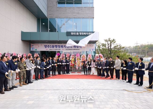 (원투원뉴스) 양주시는 17일 양주시장을 비롯해 양주시의회의장, 지역 유관 및 사회단체 관계자, 지역 주민 등 200여 명이 참석한 가운데 양주1동 행정복지센터 개청식을 개최했다고 밝혔다.