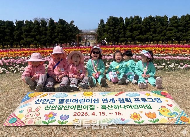(원투원뉴스) 신안군 국공립 어린이집인 흑산하나어린이집과 신안장산어린이집이 4월 15일부터 16일까지 1박 2일 일정으로 임자면 ‘2026 섬 튤립축제’를 방문하고, 열린어린이집 간 연계·협력 공동 캠핑 프로그램을 운영했다.