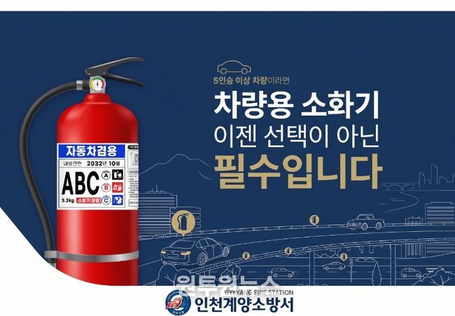 (원투원뉴스) 계양소방서(서장 송태철)는 완연한 봄을 맞아 주말 나들이 등 장거리 차량 이동이 증가함에 따라, 차량 화재 사고에 대비해 '차량용 소화기' 비치 및 상태 점검을 당부한다고 17일 밝혔다.