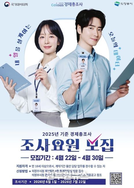(원투원뉴스) 의정부시는 6월 1일부터 실시되는 ‘2025년 기준 경제총조사’의 원활한 추진을 위해 조사요원 77명을 모집한다.