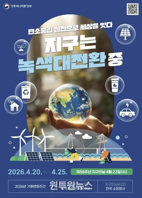 (원투원뉴스) 화성특례시는 제56주년 지구의 날(4월 22일)을 맞아 4월 20일부터 24일까지 ‘기후변화주간’을 운영하고, 시민 참여형 탄소중립 실천 캠페인을 추진한다.