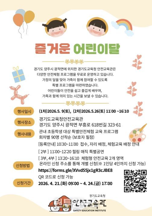 참가 신청은 21일부터 24일까지 경기도교육청안전교육관 누리집과 가정통신문을 통해 안내되는 온라인 신청 주소를 활용한 사전 예약 방식으로 진행된다.
