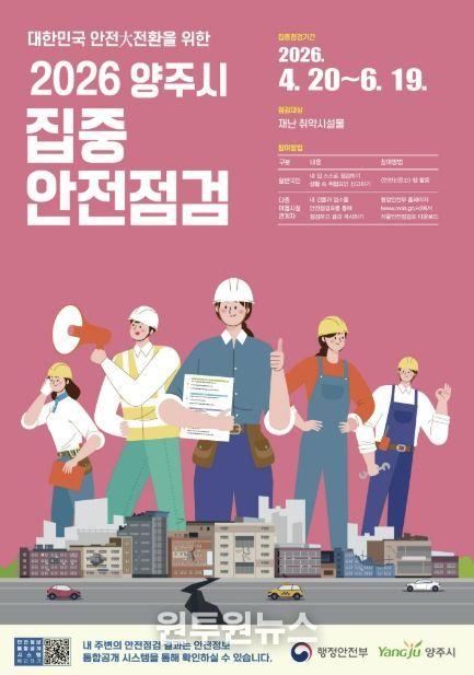 (원투원뉴스) 시민 안전 사각지대 해소를 위해 경기 양주시가 ‘2026년 집중 안전 점검’을 추진한다.