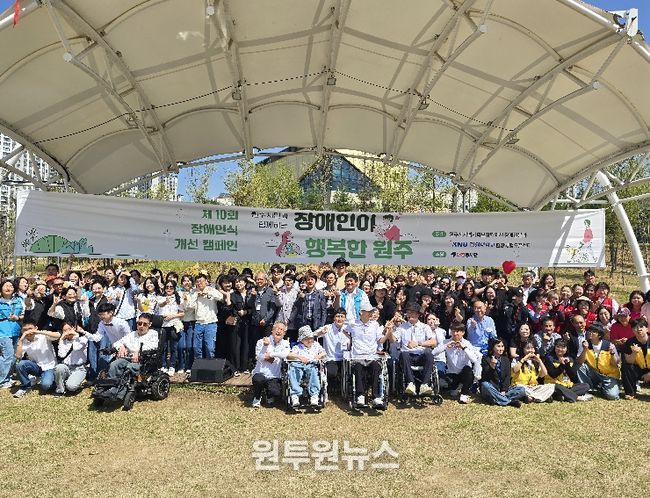 (원투원뉴스) 원주시지역사회보장협의체 장애인분과는 장애인의 날을 기념해 지난 18일 기업도시 샘마루공원에서 개최한 장애인식 개선 캠페인 ‘장애인이 행복한 원주’를 성황리에 마쳤다.