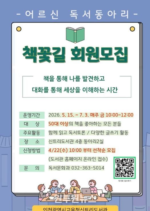(원투원뉴스) 인천광역시교육청신트리도서관은 어르신의 정서 안정과 삶의 질 향상을 지원하고 지역사회 독서문화 활성화를 위해 독서동아리 ‘책꽃길’을 운영한다.