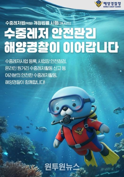 (원투원뉴스) 울진해양경찰서는 4월 23일부터 수중레저 안전관리 업무가 해양수산부에서 해양경찰청으로 완전히 일원화되어 시행된다고 밝혔다.