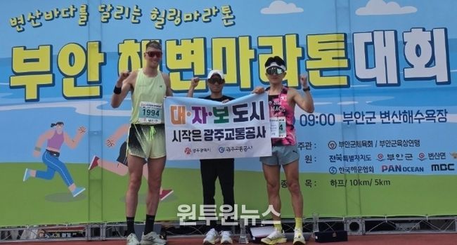 특히 이 대리는 이번 부안해변마라톤 시상대에서 “대중교통·자전거·도보(대·자·보) 도시 시작은 광주교통공사”라는 문구가 적힌 플랜카드를 들고 올라 시민들의 눈길을 끌었다. 개인의 성취를 넘어 소속 기관과 지역 정책을 알리기 위한 자발적인 퍼포먼스였다.