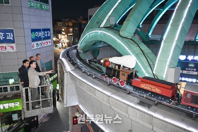 이번 현장점검에는 김영길 중구청장과 관계 공무원, 설치 업체 관계자, 문화의 거리 상인 등 30여 명이 참석해 시계탑 경관조명 설치 상태와 전기 설비 안전성 등을 점검하고, 모형 증기기관차 선로(레일) 상태와 구동 성능을 확인했다.