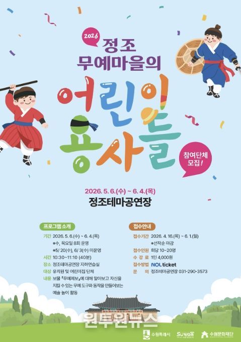 (원투원뉴스) 수원문화재단 정조테마공연장의 대표 예술교육 프로그램 '정조무예마을의 어린이 용사들'의 상반기 교육이 접수 마감되며 큰 호응을 얻고 있다.
