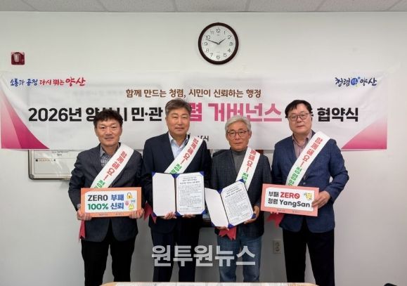 (원투원뉴스) 양산시 상하수도사업소 수도과는 청렴에 대한 사회적 관심을 유도하고 청렴의식을 확산하기 위해 관내 수도급수공사 대행 지정업체와 함께 민관 청렴 거버넌스를 구성하고, 이를 위한 협약식을 가졌다.